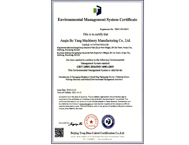 iso24001 environment management system certificate